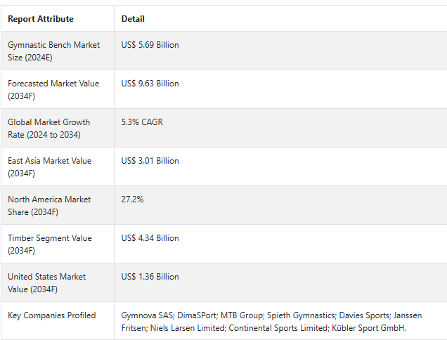 体操競技用ベンチ市場の展望(2024年〜2034年)