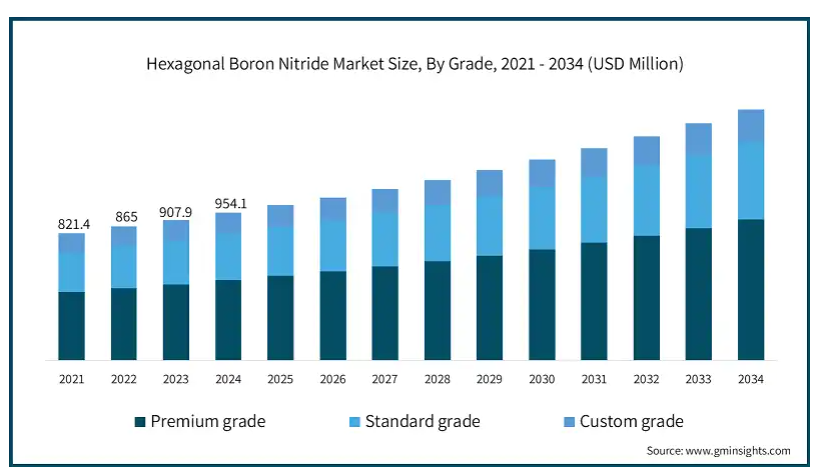 世界の六方晶窒化ホウ素市場規模(2025~2034年):グレード別(プレミアムグレード、スタンダードグレード、カスタムグレード)、用途別、エンドユーザー別産業別