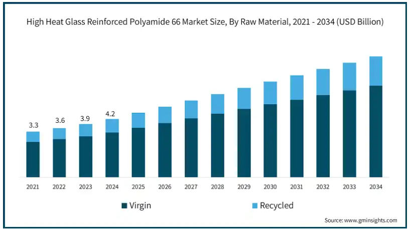 その結果、市場はバージンPA66とリサイクルPA66の両方をバランスよく混合する方向に進化しています。