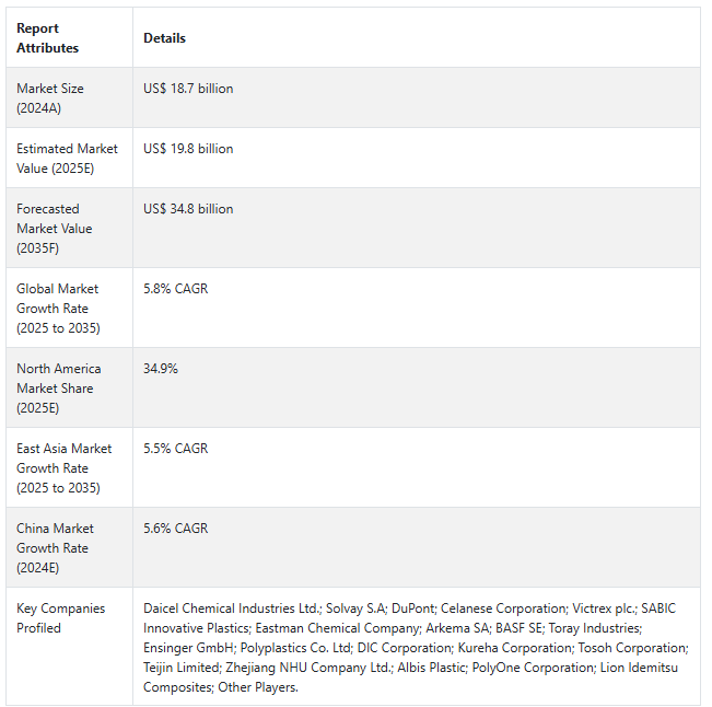 高温プラスチック(HTP)市場の展望(2025年〜2035年)