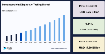 免疫タンパク質診断検査の世界市場規模は2024年に97.5億米ドルと評価され、2025年の106.0億米ドルから 2033年には175.9億米ドルに達すると予測され、予測期間(2025-2033年)の年平均成長率は6.54%です。