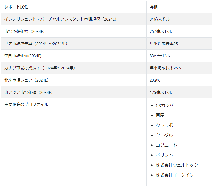 2034年までのインテリジェント・バーチャル・アシスタントの売上予測は?