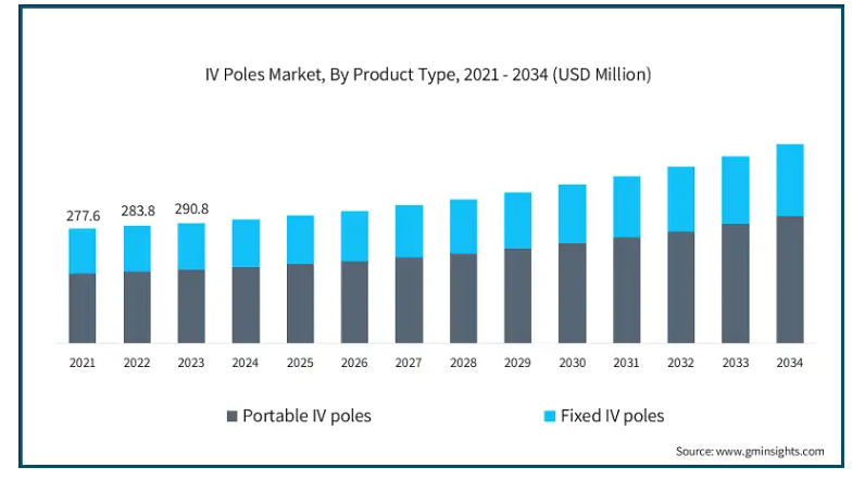 また、患者の快適性と安全性が重視されるようになったため、ポータブルIVポールの需要がさらに高まっています。これらの装置は軽量で調節可能、操作も簡単なため、治療中の患者に快適さを提供します。