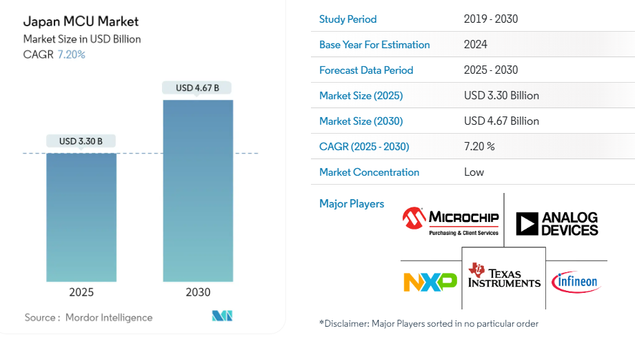 日本マイクロコントローラ(MCU)市場規模・シェア分析 – 成長動向・予測(2025年~2030年)