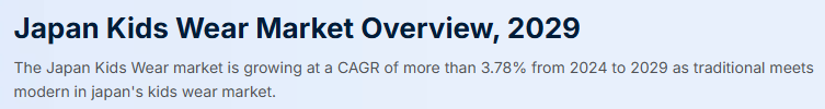 Bonafide Research社の調査レポート「日本のキッズウェア市場概要、2029年」によると、日本のキッズウェア市場は2024年から2029年にかけて年平均成長率3.78%以上で成長しています。最近のビジネスの変化は消費者の嗜好の変化を反映したもので、持続可能性への注目が高まり、環境に優しい素材や再利用されたアパレルの使用が奨励されています。より持続可能な方法へのこのシフトは、より広範な世界的トレンドと一致しており、日本ブランドの環境責任へのコミットメントを示しています。文化的な原動力と課題という点では、日本の親は子供服を買う際に品質を優先し、よく作られた長持ちする衣服に投資する意欲を示しています。特に祖父母、親戚、友人からの子供服にまつわる贈答文化は、市場における高級品への需要を促進しています。しかし、少子化のような困難が市場の成長を妨げているため、ブランドは子ども一人当たりの支出を向上させる取り組みに注力するよう求められています。日本の政策と規制は、高い基準と表示要件を課すことによって、子供服の安全性と透明性を促進しています。これらの規制には、燃焼性試験やホルムアルデヒドレベルの制限が含まれるほか、幼い消費者の安全を守り、素材、原産地、お手入れ方法を明確にすることも含まれています。