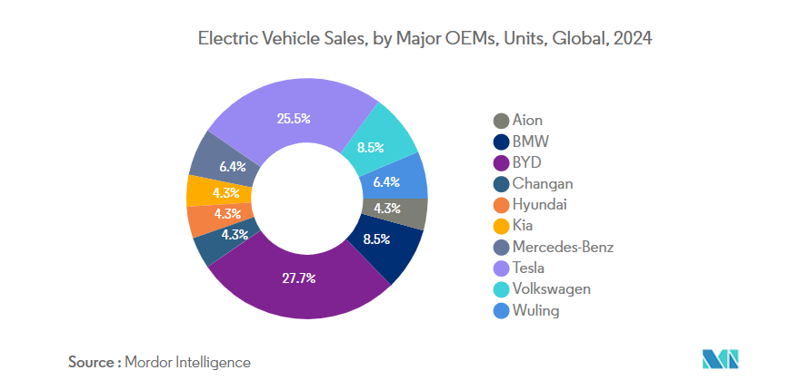 - その他のEV市場プレイヤーの中でも、顕著な市場シェアを占める注目企業が複数存在します。BMWは自動車業界における確固たる評価に加え、「BMW i」サブブランドを通じた電動モビリティへの取り組みが市場での存在感に寄与しています。同様に、2022年に3.9%の市場シェアを獲得したフォルクスワーゲンは、「フォルクスワーゲングループ」の傘下で電動モビリティへの積極的な投資を続けています。メルセデス・ベンツ、キア、ヒュンダイなどの企業も、既存のブランド認知度を活用し、魅力的な電気自動車モデルを導入し、航続距離と性能を向上させる技術に投資することで、EV業界を再構築しています。