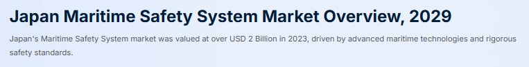 Bonafide Researchが発行した調査レポート「日本の海上安全システム市場の概要、2029年」によると、日本の海上安全システム市場は2023年に20億米ドル以上と評価されています。日本の海上安全システムには、保険とリスク管理が含まれています。海上保険市場では、偶然の事故による損失、貨物損失、環境負債など、特定の種類のリスクをカバーするための商品を提供することができます。リスク評価には洗練されたツールや方法論があり、こうした海上のリスクをより適切に評価し、効率的に軽減するのに役立ちます。包括的なリスク管理戦略は、海事全般の安全性を高めながら、利害関係者の利益を確保することができます。海事部門は日本のGDPの主要な収入源であり、経済的な安定と成長を確保するためには高い安全基準を確立する必要があります。また、海運、ロジスティクス、技術開発などの分野で、大量の雇用機会も生み出しています。海上安全への配慮は、安全性と運航効率の向上を目指す取り組みへの継続的な投資と支援努力を開始する上で重要です。国際協力は、日本の海上安全システムにおいて不可欠な部分を形成しています。近隣諸国や諸機関との二国間協定や多国間協定は、海上の安全とセキュリティを強化します。日本は、国際海事機関(IMO)のような海事関連のあらゆる国際機関に積極的に参加し、世界と比較した場合の日本の安全対策の一貫性を実現しています。これにより、それぞれの国の海事に関する共通の問題に直面し、世界的な海洋安全保障を確保することができます。日本は、イノベーションを通じて海上安全を推進するため、研究開発に重点を置いています。研究開発センターへの投資は、先進的な海上技術と安全ソリューションの開発に重点を置いています。