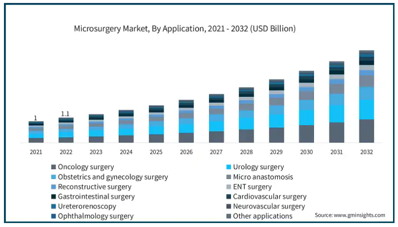 用途別では、腫瘍外科、泌尿器外科、産婦人科、マイクロ吻合、再建外科、耳鼻咽喉科、消化器外科、心臓血管外科、尿管内視鏡、神経血管外科、眼科、その他の用途に分類されます。2023年の売上高が最も高かったのは腫瘍外科分野で2億8490万米ドル。