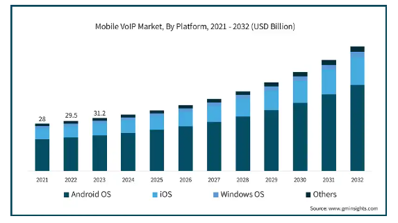 世界のモバイルVoIP市場の2023年の市場規模は312億米ドルで、2024年から2032年の年平均成長率は10.4%と予測されています。スマートフォンと高速モバイルインターネットの普及が、市場の大幅な成長を後押ししています。世界中で数十億人のスマートフォンユーザーがいるため、これらの装置は主要なコミュニケーションツールとなり、VoIPアプリケーションに簡単にアクセスできるようになりました。