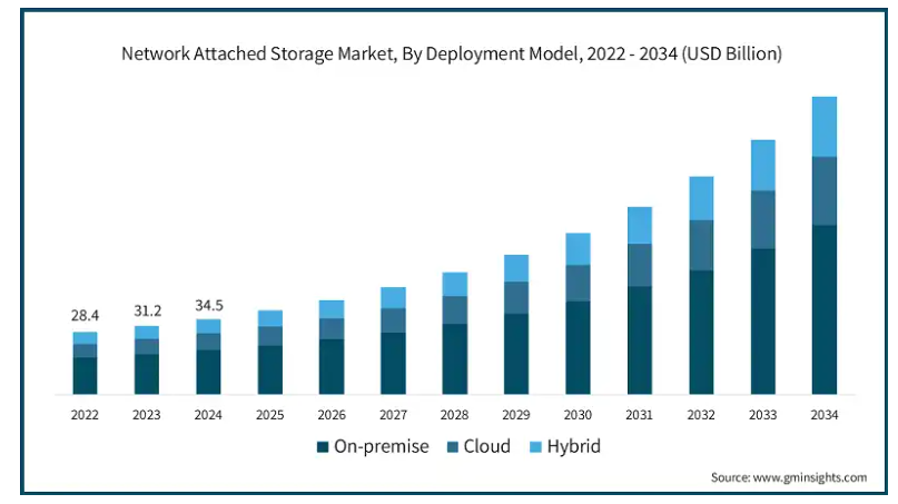 さらに、オンプレミスソリューションは低遅延と高速なデータアクセス速度を提供し、リアルタイムデータ処理を要するアプリケーションに不可欠です。多くの企業は、データ主権を確保し、厳格なデータ保護法に準拠するため、オンプレミスNASを選択しています。さらに、一部の企業はオンプレミスNASを長期的にコスト効率が良いと評価しています。クラウドストレージの継続的な費用を回避でき、ハードウェアアップグレードにおける柔軟なカスタマイズが可能だからです。これにより、データストレージにおいてセキュリティ、パフォーマンス、長期的なコスト管理を重視する企業にとって理想的な選択肢となっています。
