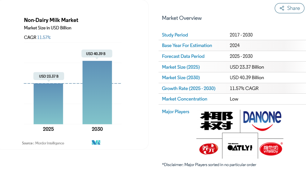 世界の非乳製品ミルク市場の動向