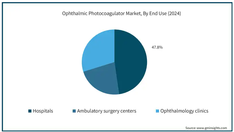 病院における眼科光凝固装置の使用は、高度なレーザー技術、専門的な医療サービス、網膜疾患患者の増加により増加傾向にあります。網膜の手術修復のようなほとんどの困難で結果的な作業は、正式な眼科クリニックのある病院で行われます。