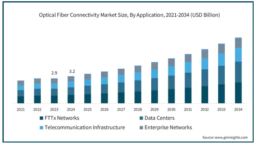 5Gは、高周波信号が長距離を伝送したり障害物を容易に透過できなかったりするため、密集した小型セルネットワークと広範な光ファイバーバックホール接続に依存しています。これにより、5Gの運用に不可欠な高速で信頼性の高いデータ転送を可能にする広範な光ファイバーネットワークの需要が生まれています。さらに、モバイルネットワーク事業者が5Gの展開を加速する中で、次世代アプリケーション(自律走行車、遠隔医療、高度なIoTネットワークなど)から予想される激しい帯域幅需要に対応するため、光ファイバーインフラへの依存度が高まっています。