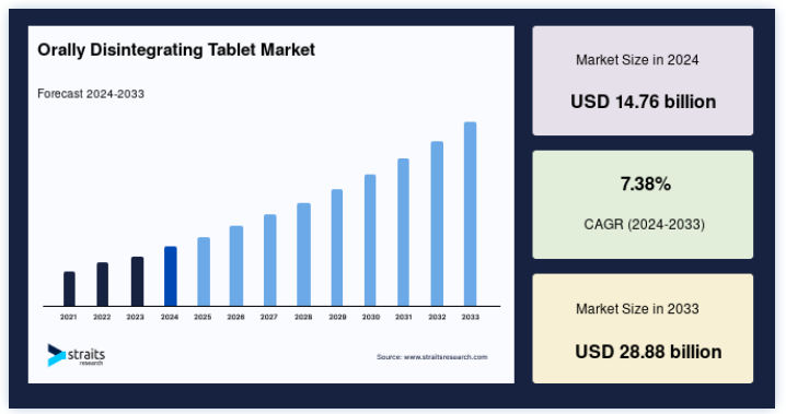 口腔内崩壊錠(ODT)の需要が高まっている背景には、従来の錠剤を飲み込む際に小児や老年患者が直面する特有の課題がある。 小児、特に発達や認知に問題のある患者は錠剤を飲み込むのに苦労することが多く、老年患者は嚥下障害(飲み込みが困難な状態)の影響を大きく受ける。