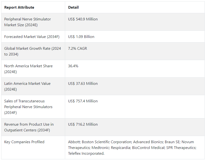 世界の末梢神経刺激装置市場の展望(2024~2034)~市場規模推移、成長予測、主要企業情報