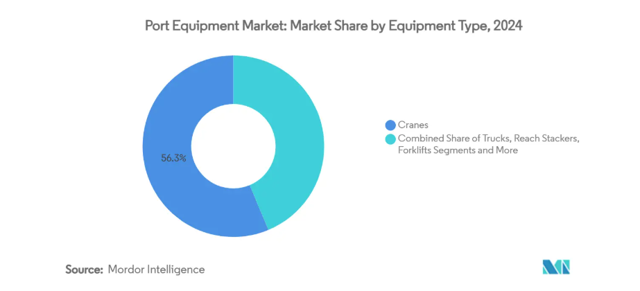 コンテナ取扱量は既に新記録を更新しており、2024年には中国の自動化港湾だけで160億4000万トンの貨物と3億個のコンテナを処理し、前年比3.4%増加しました[1]。地政学的緊張も調達戦略に影響を与えており、米国がクレーン製造の国内回帰と港湾サイバーセキュリティ強化に200億米ドルを投入していることがその証拠です。一方、アジア太平洋地域は依然として最大の地域的基盤を維持しており、クレーンは最も購入される設備クラスであり続けています。