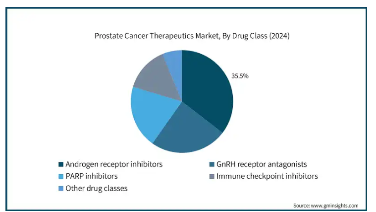 2024年の市場シェアは、アンドロゲン受容体阻害薬部門が35.5%で独占。