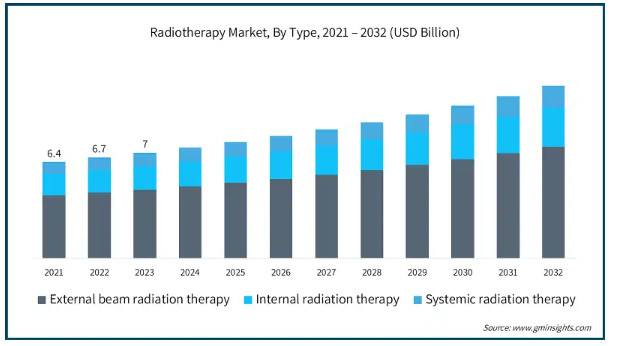 さらに、放射線治療を含むさまざまながん治療オプションに関する一般市民の意識の高まりが、市場成長の主な触媒となっています。多くの政府機関や非営利団体は、早期診断の利点や、2032年までに2,774億米ドルに達すると推定されているがん免疫療法、放射線治療などの関連治療オプションについて、個人を教育するためにさまざまな啓発プログラムを実施しています。例えば、米国がん協会(ACS)は、特定のがんに関する教育、早期発見法、予防戦略、利用可能なさまざまな治療オプションとその利点など、年間を通じてさまざまな啓発プログラムを実施しています。このようなイニシアチブは、がんの早期発見や様々ながんの治療オプションに関する人々の認識を加速させ、それによって医療従事者や患者の間で放射線治療などの高度ながん治療の採用を刺激し、市場の成長を促進します。