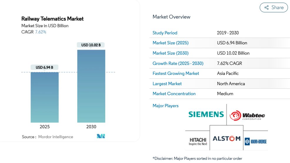 世界の鉄道テレマティクス市場:フリート管理、自動在庫管理、その他(2025年~2030年)