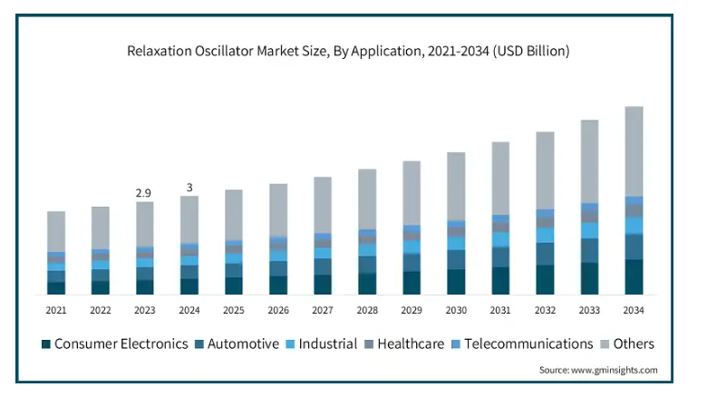 リラクゼーション発振器業界は、半導体技術の継続的な発展により成長しています。現代の発振器は、材料、小型化、エネルギー効率の進歩により、より正確で、消費電力が少なく、サイズも小型になっています。この開発により、携帯機器、ウェアラブル機器、自動車用電子機器、産業用装置などの技術にリラクゼーション発振器が採用され、市場の成長が促進されています。