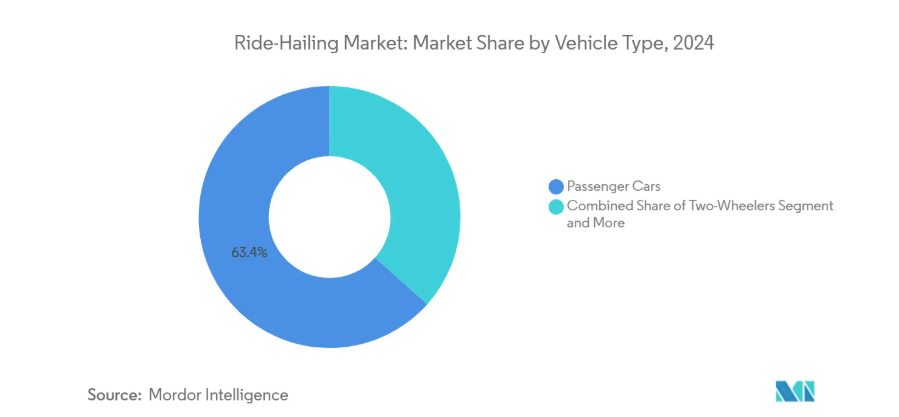 このセグメントの拡大はフリート電動化も促進します。OEMメーカーが高ボリューム乗用モデル向けにバッテリープラットフォームを優先するためです。EV価格が下落する中、事業者は航続距離最適化セダンを大量リース契約で確保し、メンテナンス費用を削減するとともに運転手の収益向上を図っています。ライドシェア市場はテレマティクスを活用し、高稼働率サブフリートを分離管理。これにより資産軽量型事業者は車両所有なしにサービス品質を管理できます。シェアと成長率の両面で主導権を握る乗用車は、二輪車やロボバンが専門分野を切り開く中でも、長期的な優位性を確固たるものにしております。