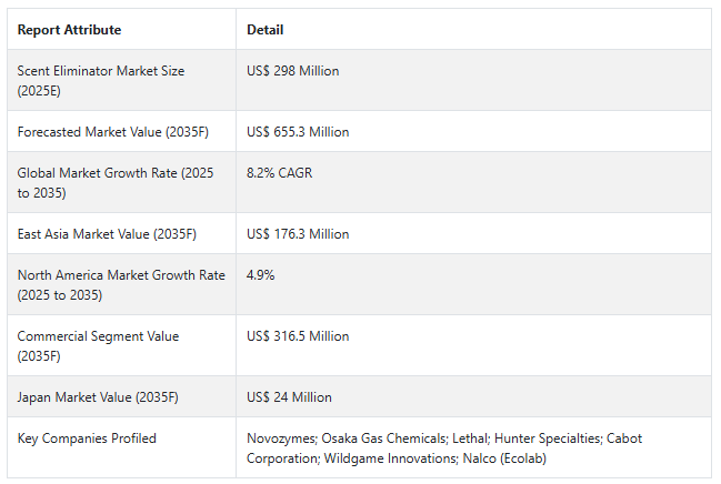 世界の香り除去剤市場は、2025年には2億9,800万米ドルの評価額に達し、2035年までの年平均成長率は8.2%でさらに拡大し、2035年末には6億5,530万米ドルに達すると推定されています。