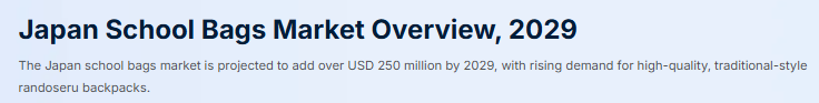 Bonafide Research社の調査レポート「日本のランドセル市場の展望、2029年」によると、日本のランドセル市場は2024年から29年までに2億5000万米ドル以上になると予測されています。日本のランドセル市場は現在、カスタマイズと持続可能性への需要の増加によって顕著な傾向を目の当たりにしています。保護者や学生は、実用的な目的だけでなく、個人のスタイルや環境への配慮を反映したバッグを求めるようになっています。このシフトにより、メーカーはカスタマイズ可能なオプションを提供し、学生がバッグの色、パターン、さらには個人的な記章を選択できるようにしています。さらに、環境問題に対する意識の高まりから、各ブランドはエコ素材を製品に取り入れるようになり、日本の良心的な消費者にアピールしています。日本の政府政策も市場形成に一役買っています。バックパックの安全性と人間工学を推進する取り組みにより、子どもの健康をサポートするバッグを選ぶことの重要性に対する保護者の意識が高まっています。このような政策により、メーカー各社は幼い使用者の負担を最小限に抑えるデザインを優先するようになり、その結果、軽量素材や人間工学に基づいた機能に焦点を当てたイノベーションが起こっています。技術面では、ランドセルを追跡するためのRFIDタグの内蔵やセキュリティ機能の強化など、スマートな要素が取り入れられ始めています。まだ広く採用されているわけではありませんが、このような疾患別イノベーションは、従来の製品にテクノロジーを組み込む傾向を示しており、ハイテクに敏感な日本の消費者の性質と共鳴しています。市場プレイヤーの面では、品質、耐久性、ユニークなデザインを重視し、日本のランドセル市場で確固たる地位を築いている企業がいくつかあります。伝統と現代的な美学をうまく融合させたブランドは、生徒や保護者の多様なニーズに応え、成功を収める可能性が高い。日本のランドセル市場は、消費者の嗜好、技術の進歩、品質と持続可能性へのこだわりの影響を受け、ダイナミックに進化しています。