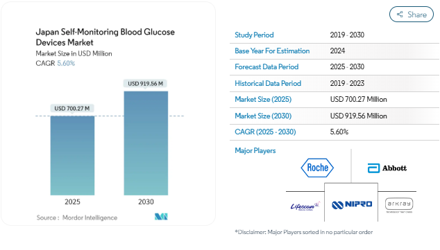 日本の自己血糖測定装置市場規模/シェア分析/成長動向(2025~2030年)