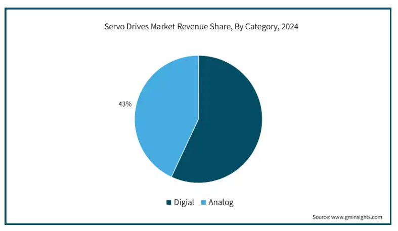アナログセグメントは、2034年まで4%以上のCAGRで成長すると予想されています。アナログサーボドライブは、さまざまな業界で精密な機械モーターの動きを可能にする重要な部品です。これらのユニットは、電圧または電流信号を使用してサーボモーターを制御し、正確な位置決め、速度、トルク調整を実現し、製品の展開をさらに拡大します。これらのユニットは、製造、ロボット工学、自動車、航空宇宙分野など、業務効率の向上に重要な役割を果たす分野で広く使用されており、アナログサーボモーターおよびドライブ業界の成長にさらに貢献しています。
