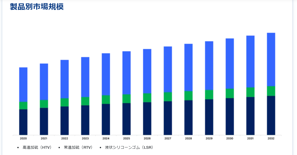 LSRはその名の通り液状のエラストマーで、特殊な射出成形や圧縮成形によって固化します。 通常、硬化には熱が使用されます。 LSRは複雑なディテールを再現し、高い公差を維持できることで知られており、精密部品に理想的な材料です。 その生体適合性、透明性、柔軟性から、LSRは医療機器、乳幼児ケア製品、自動車部品(ガスケットやシールなど)、消費財などに広く使用されている。 最近では、HTVが市場の半分以上を占め、支配的な製品となっている。 主要な最終用途産業、特に発展途上地域が主要な成長ドライバーになると予想される。 HTVシリコーン・エラストマーの硬化には、通常150℃以上の温度が必要である。 この手順により、未加工のシリコーンが実質的なエラストマー形状に変化します。