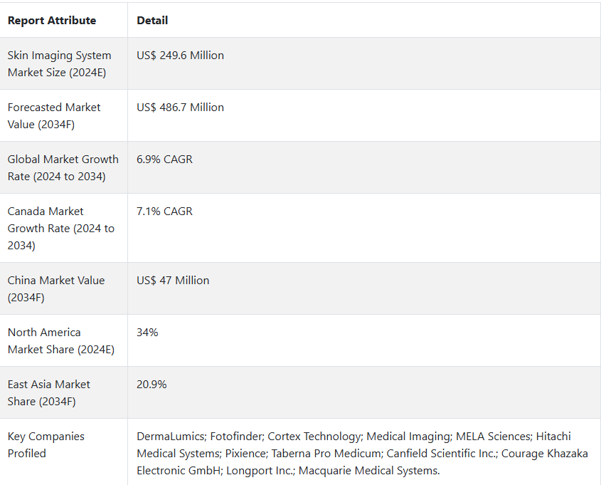 世界の皮膚画像診断装置市場は、2億4960万ドルで、CAGR 6.9%で拡大し、2034年末には4億8670万ドルに達すると予測されている。