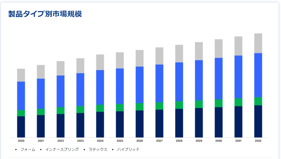 スリーピングマットレスは、睡眠を目的としたクッション材で満たされたベッドとして使用されるように設計されている。 フォームマットレス、ラテックスマットレス、スプリングマットレス、ハイブリッドマットレスなど数多くの素材が、顧客のさまざまなニーズに合わせてスリーピングベッドとして利用できる。 競争の激しい市場で勝ち残るため、企業は非接触型睡眠追跡装置やマットレス冷却ソフトウェアなど、最先端の技術を開発し続けている。 住宅やホテルの増加により、インフラの拡張が世界のスリーピングマットレス市場の成長を促す主な要因の一つとなっている。