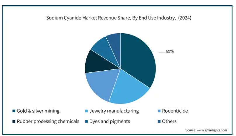 持続可能な生産と厳しい規制遵守への関心の高まり。アメリカ、カナダ、ヨーロッパの一部の地域では、シアン化ナトリウムの有毒性を考慮し、厳しい環境規制がシアン化ナトリウムの使用と廃棄の規制を強化しています。これに対応するため、メーカーは高度な安全対策を採用するだけでなく、チオ硫酸塩のような環境に優しい代替品の開発にも投資しています。さらに、環境への影響を抑え、操業コストを削減するため、鉱業ではシアン化溶液をリサイクルする方向への業界シフトが顕著になっています。