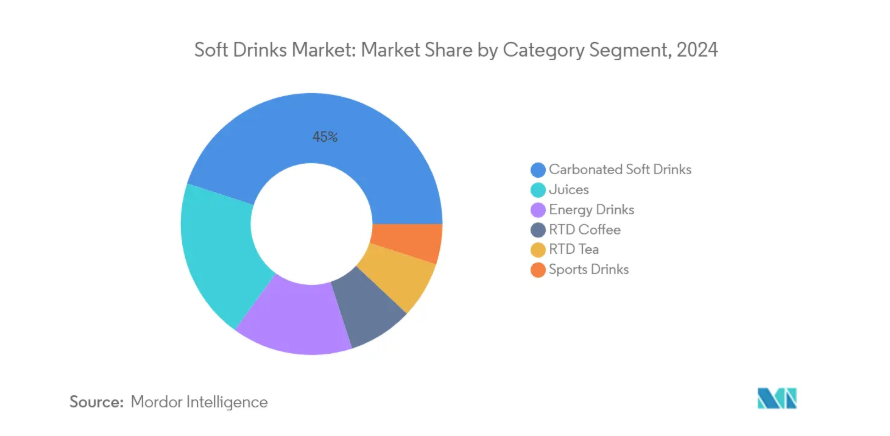 世界のソフトドリンク市場における炭酸飲料セグメント