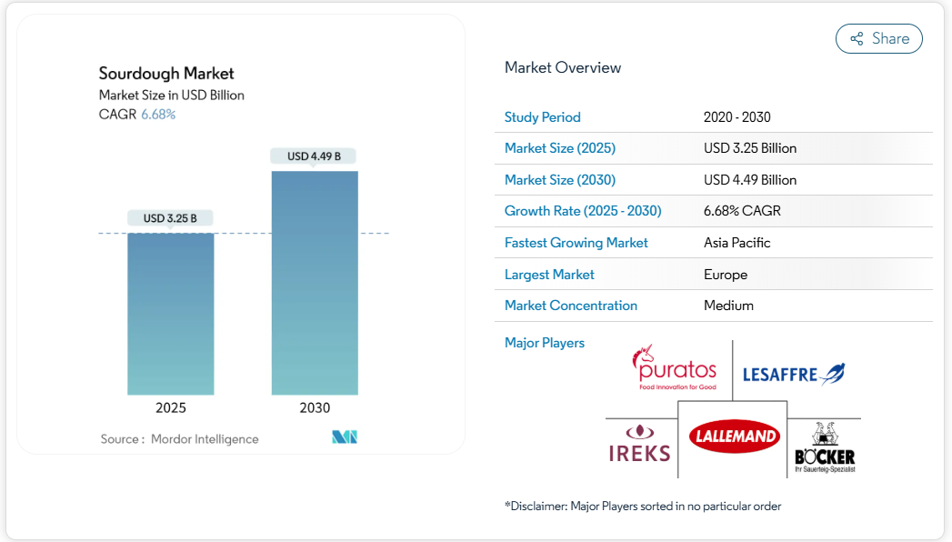 サワードウ市場におけるグローバル競争は、主要な多国籍企業が発酵技術と技術支援能力を拡大する中で、中程度の集中化が進んでいます。例えば、ピュラトスは「ザ・サワードウ・インスティテュート」を通じてグローバルなサワードウネットワークを強化しており、同機関は独自の培養菌株の保存とベストプラクティスの共有に注力しています。同様に、レサフレ社がビオリジン社を買収したことで、同社はスターター向けの革新的な酵母ベースの栄養素を開発し、腸内環境をサポートする製品で健康志向の消費者層をターゲットにしています。こうした戦略的動きは、企業が買収や研究を活用して競争力を維持している実態を浮き彫りにしています。