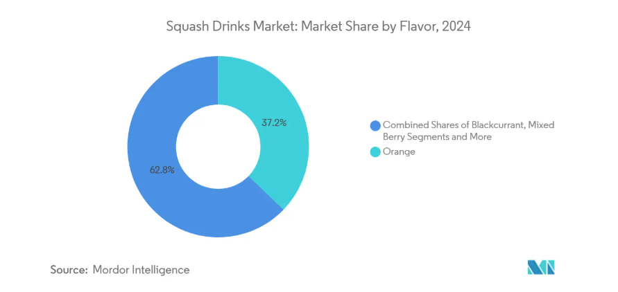 主要飲料メーカーは機能性製品や低糖製品ラインの拡充を進めており、植物由来素材やミックスベリーを用いたフレーバー開発を促進しています。世界的な柑橘類収穫の供給混乱を受け、メーカーは代替果実の確保とフレーバーラインナップの多様化を推進中です。カールスバーグによるブリトビック買収やペプシコによるポッピ買収といったM&A動向は、プレミアム・機能性スクワッシュ製品の戦略的重要性を裏付けています。