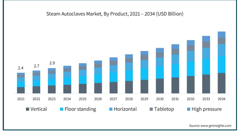 医薬品の開発・製造部門が成長するにつれ、製品開発や試験中に汚染のない環境を提供するために高品質の蒸気オートクレーブを使用することへの注目が高まっています。