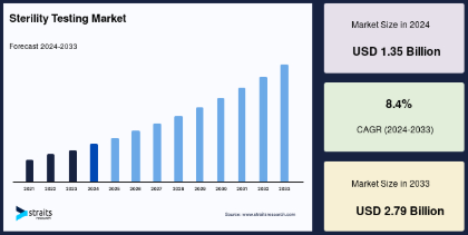 無菌検査市場の成長要因として、製薬業界の拡大、研究開発の増加が挙げられます。製薬業界では、患者に安全な医薬品を提供するために、無菌性の確認が必須であり、すべての製造段階で無菌試験が行われています。また、政府や民間からの資金援助が増加していることで、バイオサイエンスの研究開発が進み、無菌検査市場も拡大しています。