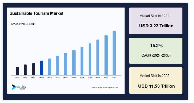 さらに、消費者は持続可能性と責任ある観光の実践に取り組む旅行ブランドや場所にますます惹かれている。 ニールセンの調査によると、消費者の66%が、持続可能性を優先する企業の製品やサービスにより多くの対価を支払う用意があると回答している。 この傾向は旅行業界にも及んでおり、消費者は自分の価値観を反映したサステイナブルツーリズム体験への投資を熱望している。