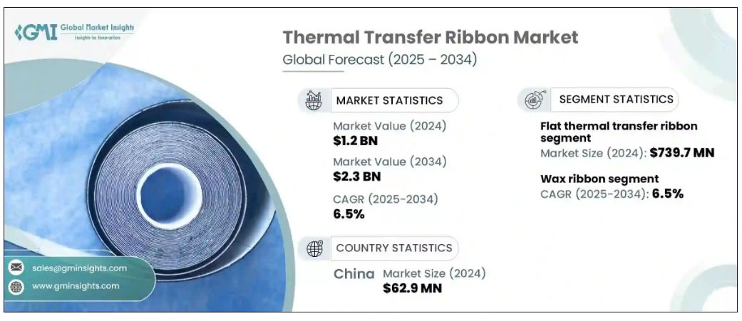 熱転写リボンの世界市場規模は2024年に12億米ドルとなり、2025年から2034年にかけて年平均成長率6.5%以上で成長すると予測されています。