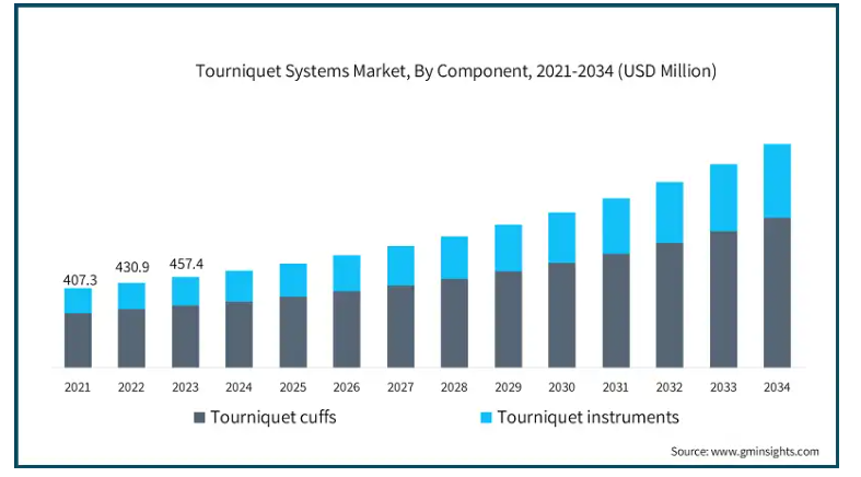 空気圧式や自動式止血帯システムなどの技術の進歩により、安全性、精度、ユーザーの利便性が向上し、病院と外来手術センターの両方で採用が進んでいます。手術中の効果的な出血管理に対する意識の高まりは、スマート医療装置に対する支援的な償還政策と相まって、市場の成長をさらに加速させています。