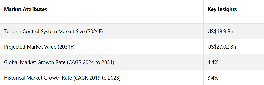 Turbine Control System Market by Type (Steam Turbine Control System, Gas Turbine Control System), Function (Speed Control, Temperature Control, Load Control, Pressure Control), Component (Hardware, Software), and Region for 2024 to 2031