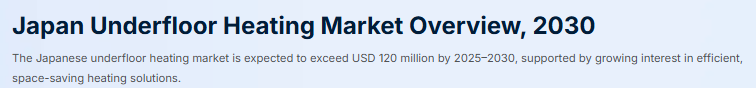 Bonafide Research社の調査レポート「日本の床暖房市場概要、2030年」によると、日本の床暖房市場は2025-30年までに1億2000万米ドル以上になると予測されています。日本の床暖房市場は、様々な要因が重なりダイナミックな変化を経験しています。エネルギー効率の高い持続可能な暖房ソリューションに対する需要の急増と、室内快適性の重視の高まりが市場成長を後押ししています。主な市場促進要因としては、エネルギーコストの上昇、エネルギー効率に関する厳しい規制、環境に配慮した建築慣行へのシフトなどが挙げられます。スマートサーモスタットや再生可能エネルギー源の統合といった技術の進歩は、床暖房システムの魅力と効率を高め、消費者の間で人気の選択肢となっています。日本政府は、住宅所有者や企業にとって床暖房をより身近で手頃なものにする奨励金やリベートを含む様々な貿易プログラムを通じて、市場導入を促進する上で重要な役割を果たしています。こうしたイニシアチブは、床暖房システムの利点に対する認識と理解を促進する、強力な業界団体と教育キャンペーンによって支えられています。さらに、床暖房の控えめな性質と見事に調和する、ミニマルで効率的な居住空間を重視する日本の文化も、この市場に利益をもたらしています。これらの要因が組み合わさることで、日本の床暖房市場が成長・発展するための活発な生態系が形成され、床暖房がエネルギー効率の高い快適な生活・職場環境を実現するための重要な要素であり続けることが保証されています。市場が進化を続ける中、技術革新と持続可能性と快適性への集団的コミットメントが原動力となり、持続的な成長が見込まれています。
