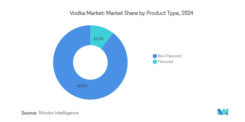 フレーバー付きウォッカメーカーは、植物由来のストーリー性を強調する戦略、持続可能な調達手法の採用、低糖質処方の推進などを通じて、健康志向の消費者層の拡大に対応しています。このアプローチの顕著な例がエンペラドールの「ザ・バー」シリーズであり、独自のトロピカルフレーバープロファイルで差別化を図っています。一方、ノンフレーバーウォッカセグメントの主要プレイヤーは、バーテンダーとの強固な関係構築やカクテル調製における製品品質の一貫性確保に注力し、市場シェアの維持に努めています。小売業者は通常、商品の販売速度に基づいて棚スペースを割り当てていますが、フレーバー付きウォッカの需要が引き続き伸びる場合、予測期間中にプラノグラムを調整する可能性があります。ただし、ノンフレーバーウォッカセグメントは、幅広い消費者基盤と確立された市場での存在感を考慮すると、堅調な業績を維持すると予想されます。