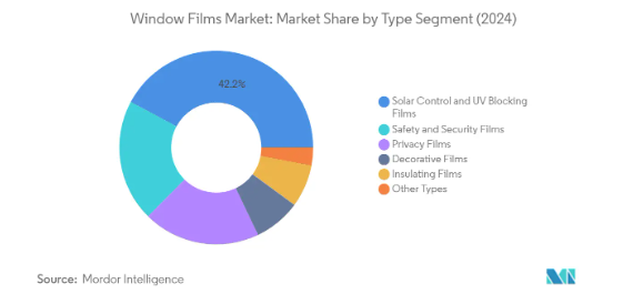 窓用フィルム市場におけるソーラーコントロールフィルムとUVカットフィルムのセグメント