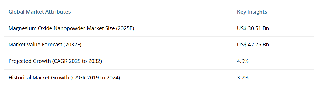 - グローバル酸化マグネシウムナノパウダー市場見通し: