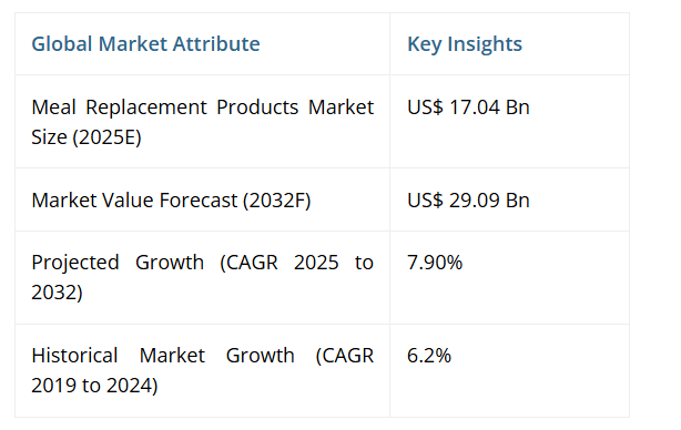 世界の食事代替製品市場規模は、2025年の170億4,000万ドルから、2032年までに290億9,000万ドルへ増加すると予測されております。