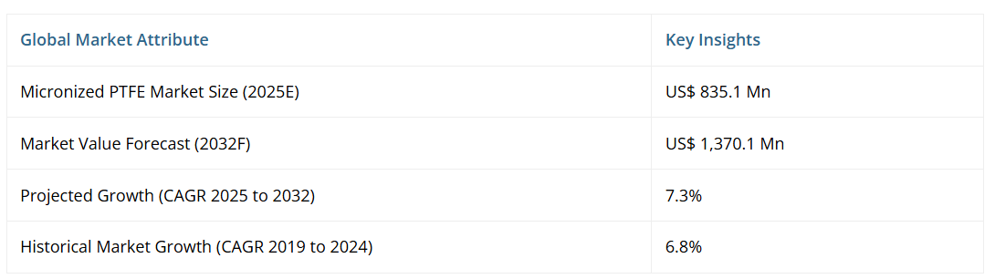 世界の微粉化PTFE市場の規模は、2025年の8億3510万ドルから2032年には13億7010万ドルへと成長し、2025年から2032年にかけて年平均成長率(CAGR)7.3%で拡大すると見込まれております。