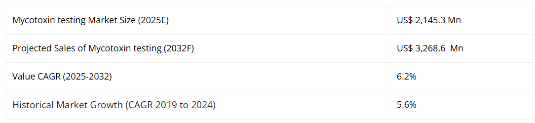 マイコトキシン検査の市場は、年間成長率6.2%で拡大し、市場規模が21億4,530ドルから2032年までに約32億6,860ドルへ増加すると予測されております。