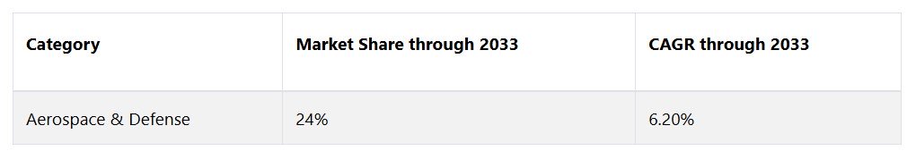 航空宇宙および防衛産業が24%の大きな市場シェアを占める見通し